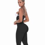The Emy jumpsuit is a shaping jumpsuit made of powernet. It closes with four adjustable rows of hooks to modify the compression as needed.