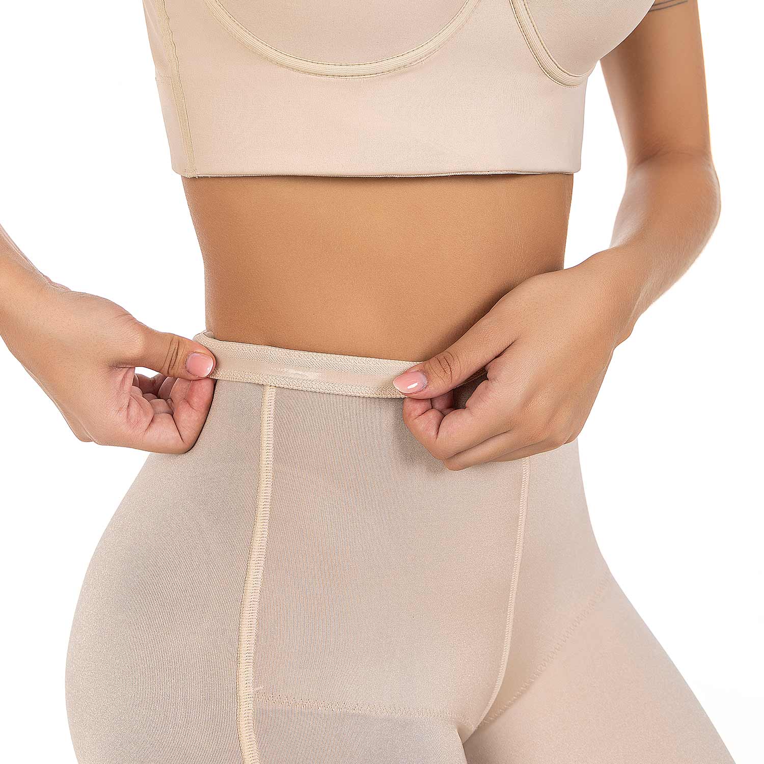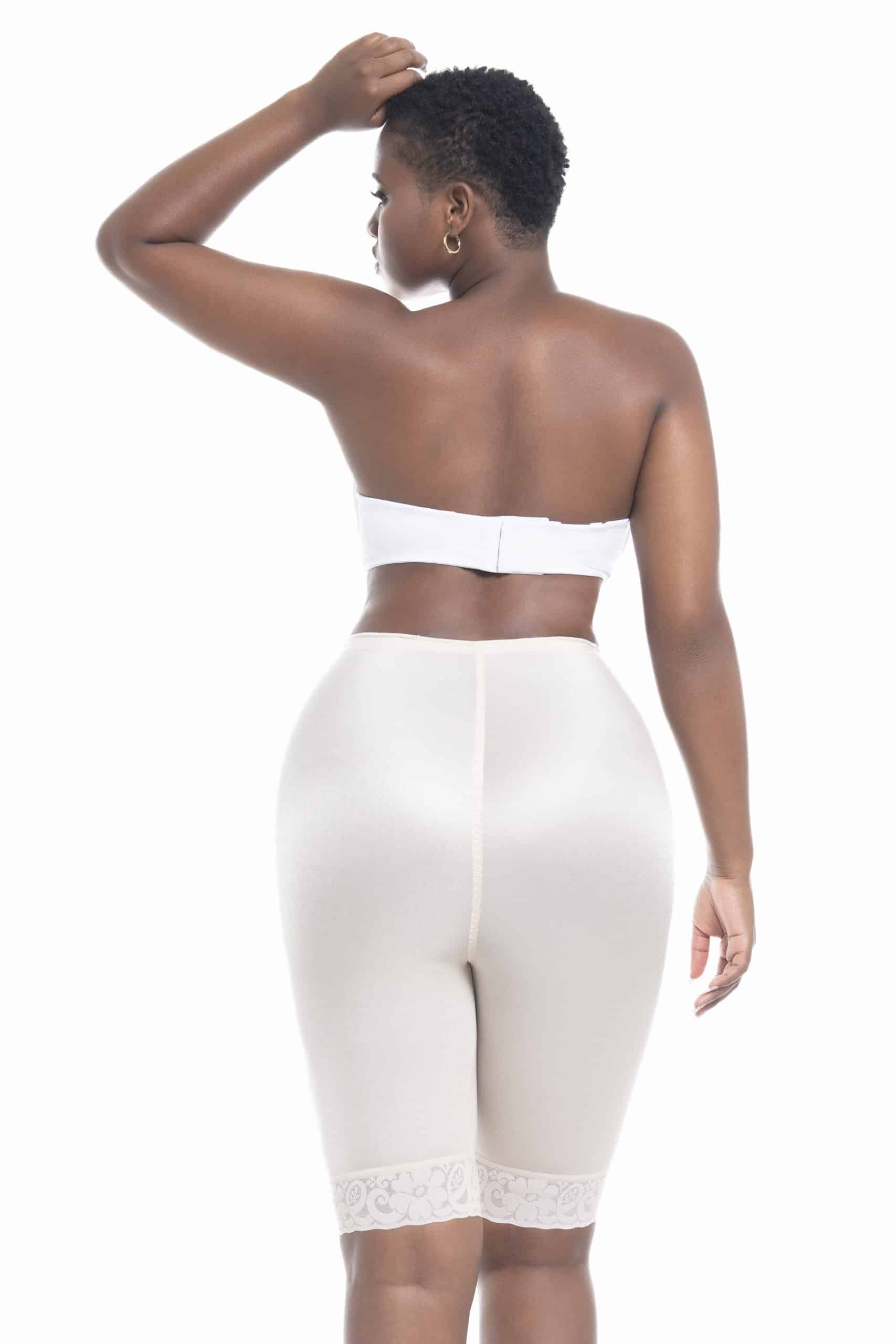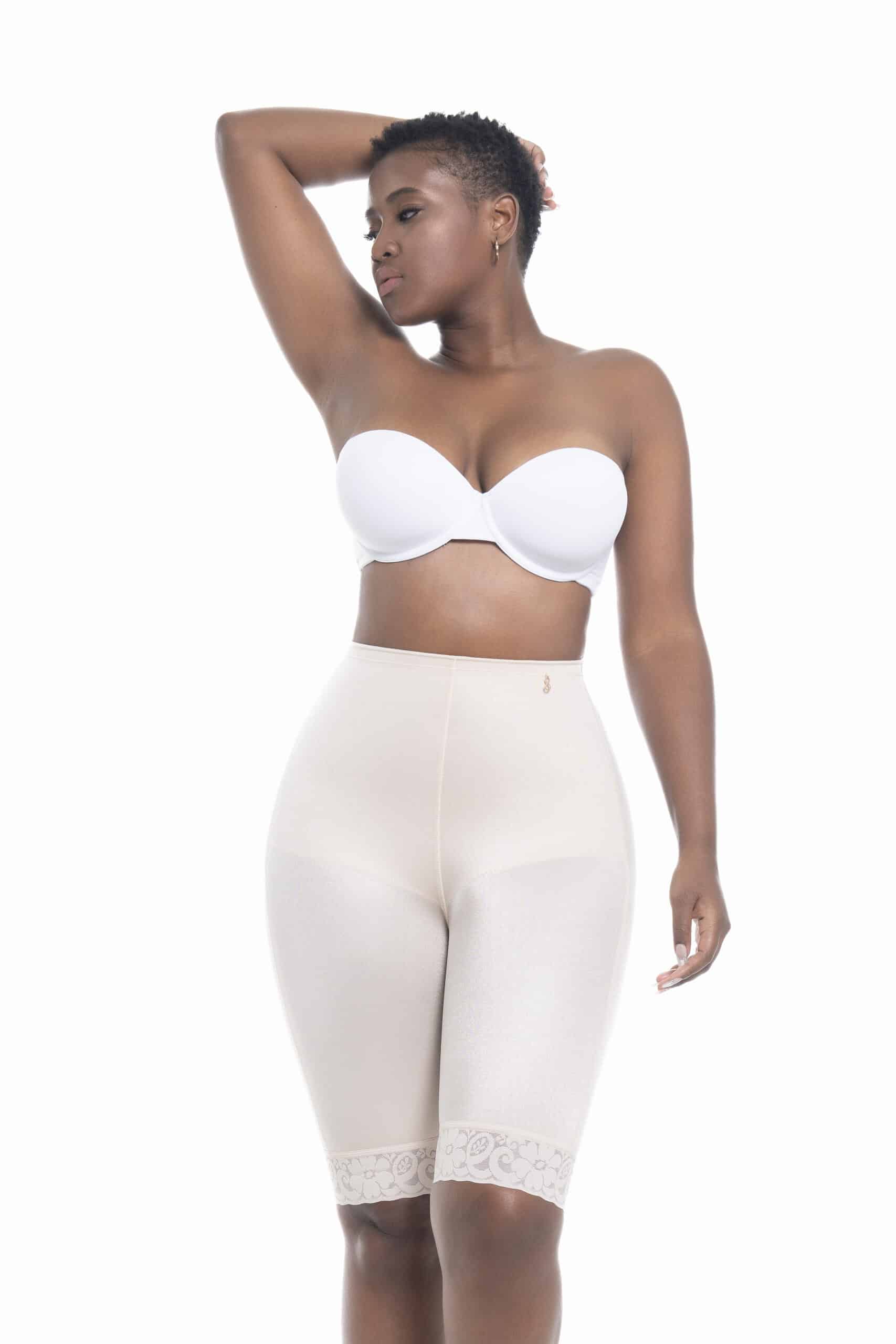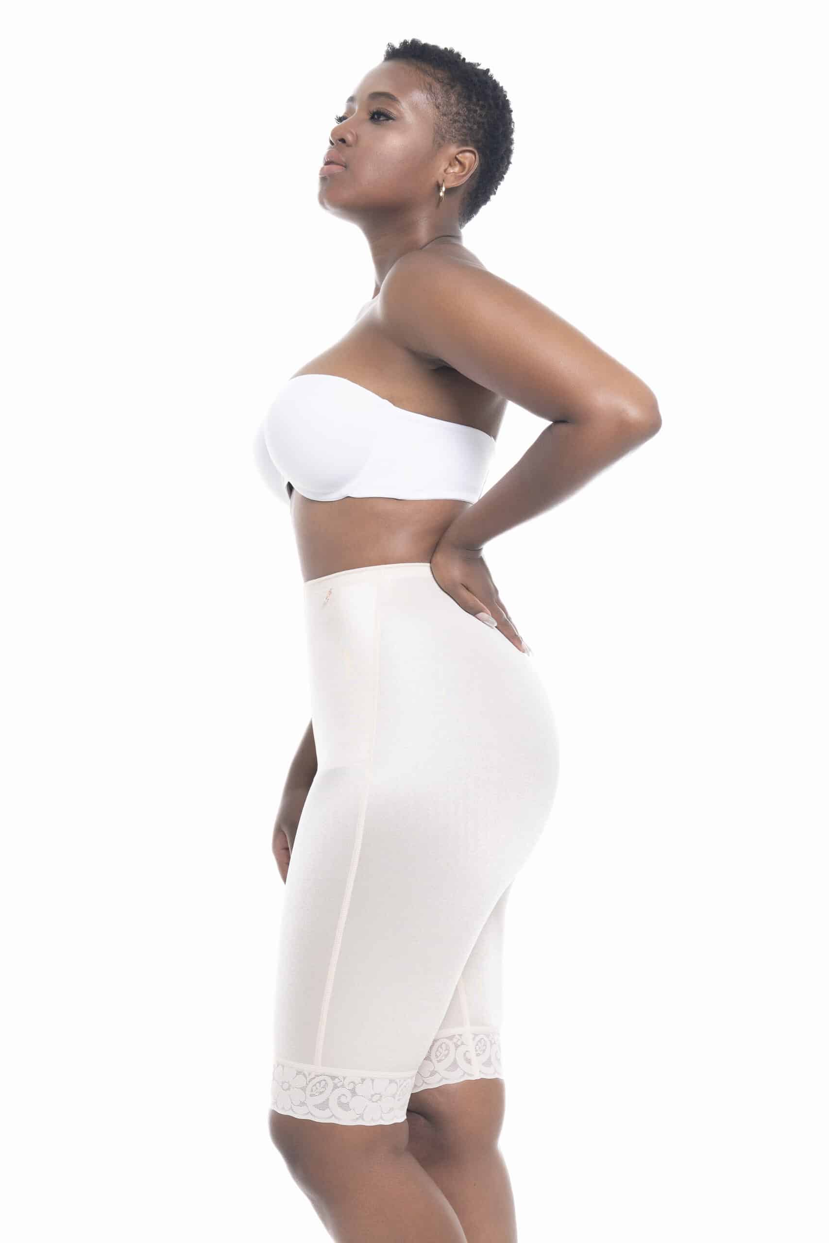 The Imany shorts are mid-high shaping shorts designed to smooth the thighs, hips, and saddle bags without adding extra volume to the buttocks. This model provides gentle support without compressing the rear.