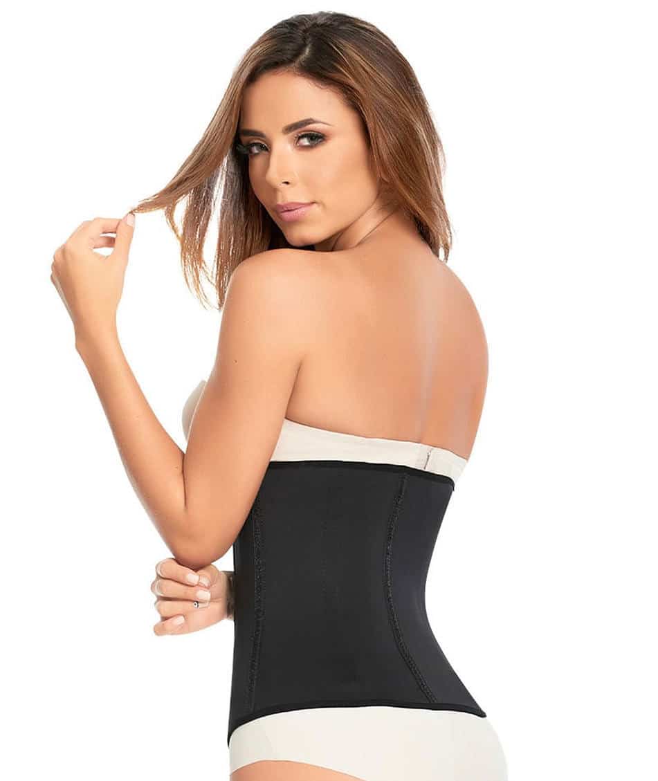 It combines two sculpting materials, neoprene and latex, for a sauna effect during workouts. Additionally, it features 3 rows of hooks for adjustable compression.