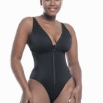 Maillot de bain MIAMI avec corset intégré. 4 armatures en acier qui vont dans l’eau. Corset fin et discret avec 2 rangées de crochets. Fermeture à zip. Coussinets poitrine amovibles. Échancré